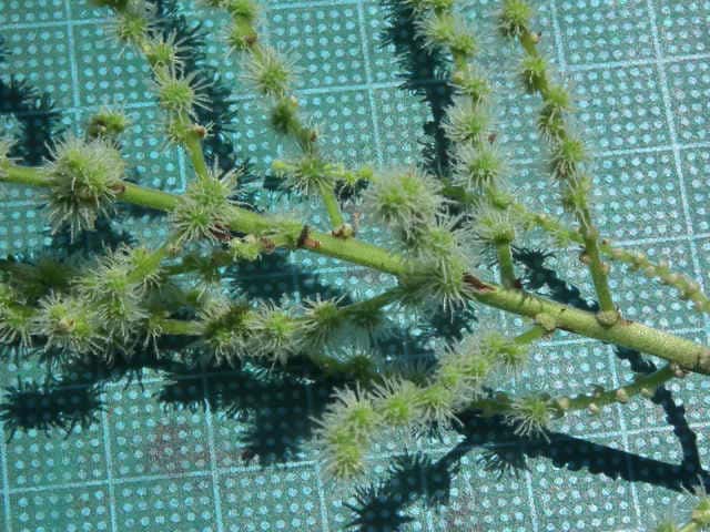 | ▼下部の分枝した雄花序。 | ▼雄花序は長さ約18cm。 | ▼雄花序の雄花。 |