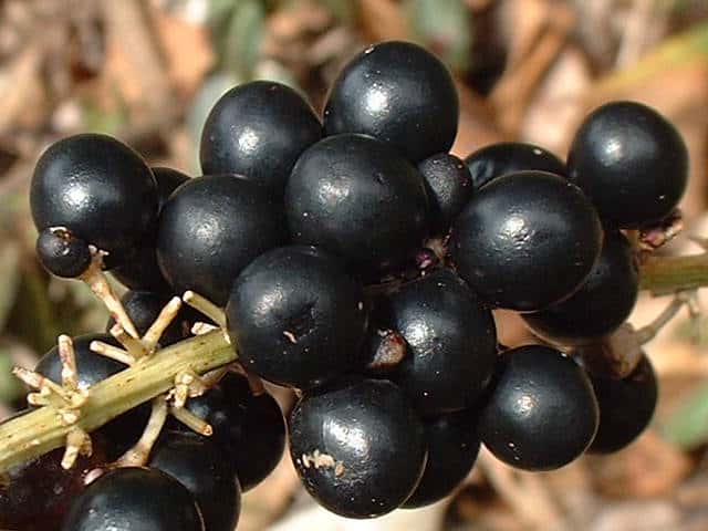 | 多年草 本州〜沖縄の林下に生える。根の一部に膨らみがあるが、匐枝は出さない。葉は根生し、線形で長さ30〜60cm、幅0.8〜1.2cm、鈍頭、縁に小さな鋸歯がある。花茎の高さは30〜50cm、淡紫色の小さな花を総状に多数つける。花被片は6枚、長さ約4mmで数個ずつ束生する。種子は球形、黒色で光沢があり直径6〜7mm、果実のように見える。ヤブラン属の果実はさく果だが、果皮が薄くて脱落し、種子がむきだしになって成熟する。花期は8〜10月。(広島の山野草) 似た仲間にコヤブラン、ヒメヤブランがある。 学名は、Liriope muscari キジカクシ科ヤブラン属 |