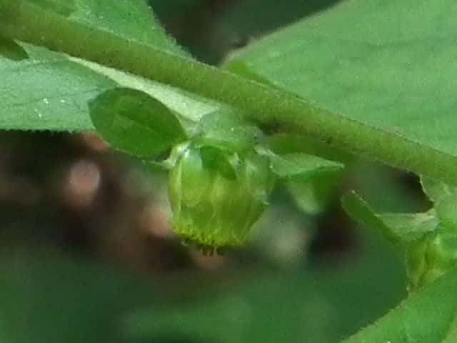 | ▼2015年9月19日 八雲 | ▼頭花は葉腋に1個ずつ下向きにつく。 | ▼頭花は長さ約7mm。 |