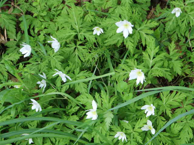 | ▼2016年4月19日 八雲 | ▼イチリンソウは萼が5〜6個だが、8個ある。 | ▼雄しべ、雌しべは多数ある。 |