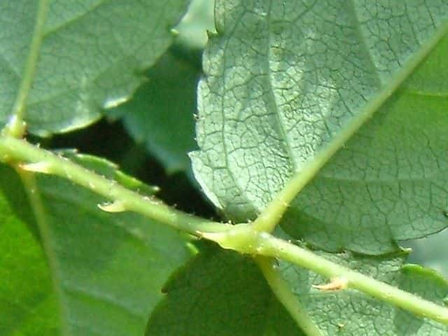 | ▼2007年7月8日 幼木 東持田 | ▼葉軸に刺がある。 | ▼托葉の縁に短い腺毛がある。 |