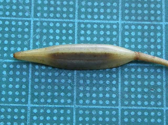 | ▼開いていない果実。 | ▼先端が開いた果実。 | ▼種子は長さ約2mm。 |