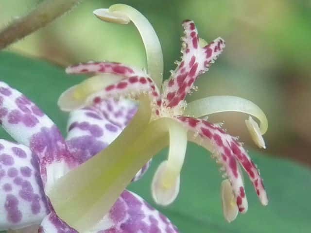 | ▼2017年9月4日 東忌部 | ▼花被片は平開し、花糸に斑点がない。 | ▼雄しべは6個。 |