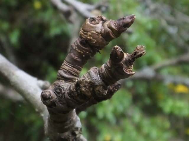 | ▼葉痕が短枝には束生する。 | ▼枝先が刺状になるものがある。 | |