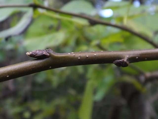 | ▼2014年1月7日 冬芽 東忌部 | ▼葉痕が長枝には互生につく。 | |