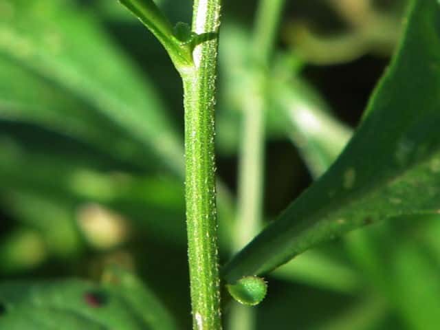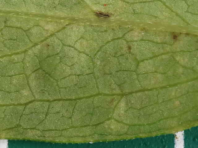 | ▼葉の裏面に短毛がある。 | ▼茎に上向きの伏毛がある。 | |