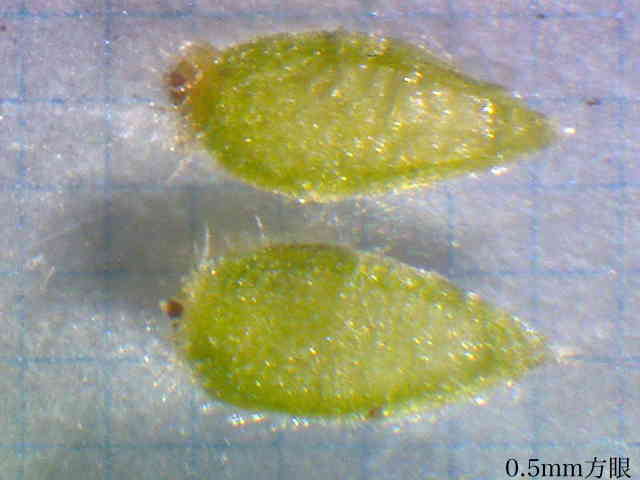 | ▼果実は長さ約3mm。 | ▼冠毛は長さ0.5mm未満。 | |