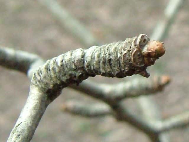 | アベマキ | 冬芽は長さ4〜8mmの長卵形。芽鱗は20〜30個。芽鱗のふちには灰色の毛が密生する。葉痕は半円形。 。 | ||