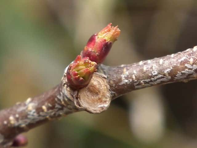 | アクシバ | 長さ3〜4mmの狭楕円形。芽鱗は2個で無毛。葉痕は三日月形〜扁円形。維管束痕は1個。 | ||