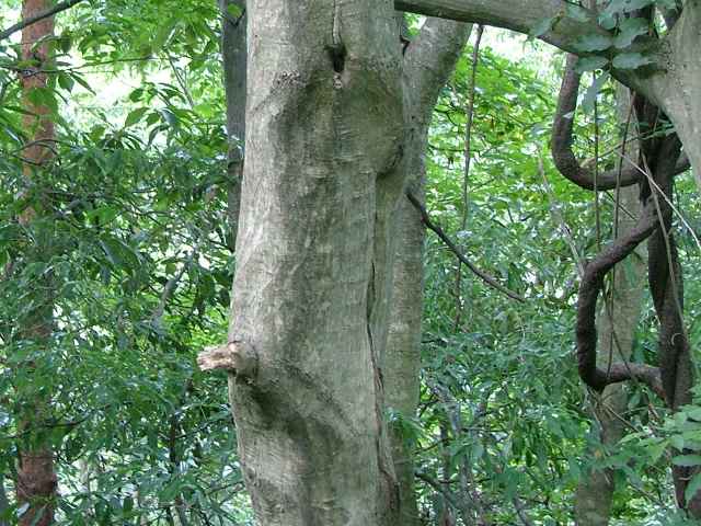 | イヌエンジュ | 樹皮は緑褐色で丸い皮目がある。(ハネミイヌエンジュ) |