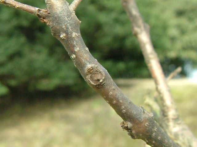 | ケンポナシ | 樹皮は暗灰色。網目状の縦の割れ目が多い。枝は暗紫色〜紫褐色で光沢があり、無毛。長楕円形のやや突出した皮目が多い。 |