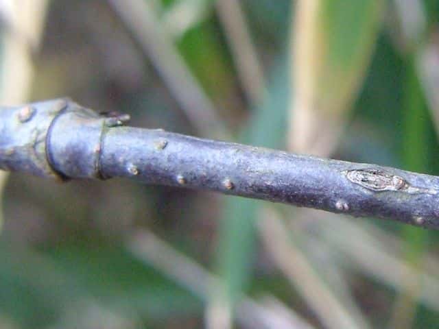 | マルバアキグミ | 樹皮は灰黒色。若枝は灰白色の鱗片に覆われる。 | |
