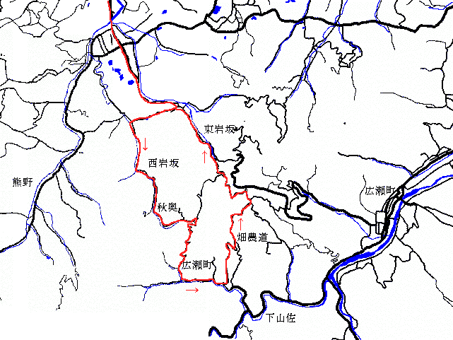 西岩坂秋奥 右 広瀬下山佐へ |