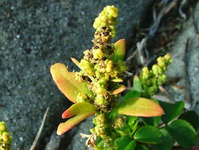 | 今日は先日から気になっているリンドウとセンブリの蕾がどうなったかを佐草まで見にいきました。田んぼの脇のリンドウは残念ながらみあたりませんでした。だれかに採取されてしまったようです。山のセンブリは満開状態を確認できました。リンドウがなかったこともあり、もうひとつ気になっている朝日山(342m)と海岸へ行ってみることにしました。 前回は古浦から自転車を引っ張って反対側へ下ったのですが、今回も古浦からですが、身ひとつで上がることにしました。とってもいい天気で、道のつきあたりのグランドゴルフ場で眼下に広がる海を見ながら昼食(サンドウィッチ)です。 登山道へ入って、最初にであったヨメナはいい機会だと、花を分解し冠毛が目立たないことを確認し、やっとこれでヨメナだと安心しました。道の脇には黄色いツワブキやセンブリがたくさん咲いています。オケラやコウヤボウキもあります。普通に歩くと登山道入口から50分だそうです。 頂上付近にはキッコウハグマやセンブリがかわいい花を開いています。ここからは南には宍道湖、北側には日本海の広い海を眺めることができます。朝日寺の休憩所で住職さんにお茶をごちそうになり、時間もないので早々に下山しました。ここから恵曇(えとも)漁港を過ぎて山をひとつ越えたところに手結漁港があります。ここの岩場にはいろいろな海岸植物をみることができます。 久しぶりの長距離となって帰りは尻がいたくなってしまいました。 所要時間7時間00分 |
