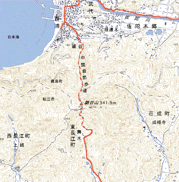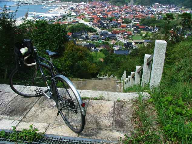 | 今日は、知人に教えてもらったナンバンギセルを国屋へ見に行くことにしました。ナンバンギセルはススキのたもとにまだたくさん紫色の花をつけて並んでいました。 ここまで来たからとついでに鹿島古浦へ海の様子を見に行くことにする。古浦海岸のはずれの方は、先日の台風の影響で海岸が波に洗われ以前に植物が生えていた場所もゴミに埋まっていました。花らしいものもないので、朝日山を越えて帰ろうと登山道へ向かう。 先ずは急な石段が続く。ここを縁石にタイヤを載せ持ち上げる。数十mも行くと休憩をしないと動けなくなってしまいます。石段が終わると今度は急な山道、そして丸太の階段と続く。でもこの道は多くの野草が花を咲かせています。ネナシカズラ、キンミズヒキ、ヤマジノホトトギス、シラヤマギクなどなど。なかでも頂上近くの道ばたに白く輝くギンリョウソウモドキを見つけたときには、今までの疲れもふっ飛んでしまいました。 頂上、朝日寺の休憩所ではちょうどお茶時で、お寺さんと一緒に熱いお茶をごちそうになり、乾いた喉にとっても美味しかったです。ここから松江側へ下りますが、しばらく駐車場までは急な下りのため、自転車は引っ張って行くしかありません。無事に朝日山の自転車横断成功でした。 所要時間7時間00分 |