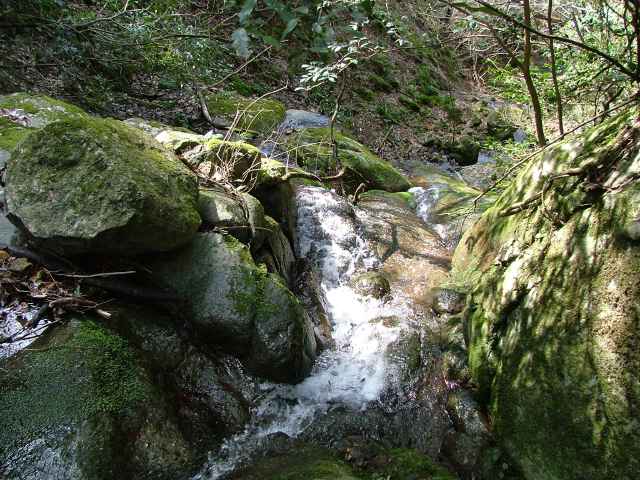| 今日は熊野の奥にセリバオウレンを見に行こうと出かける。途中須谷のあたりで道ばたに薄紫の小さな花がたくさん咲いているのが目に留まり、見てみるとフラサバソウだった。こんなところにもあるのかとびっくりする。 熊野の奥から左へ入り川に沿って山へ上がって行く。木立の中へ入る手前に白い花が咲いているのが見えた。これがセリバオウレンだ。たくさん並んで咲いている。ここから少し登って行くと道も終わりになり自転車では行けない。 最初は右の沢へと上がっていくとワサビの生えた清流が流れているが、道もとぎれあきらめてもとへ帰る。今度は左の沢へ上がってみると、イチリンソウらしい花が蕾をつけていた。その先に素晴らしい滝が目の前に現れてくる。松江の近くでは一番大きな滝ではないだろうか。滝を越え、道なき道を沢伝いにあがっていく。こんなところがあったのかと思う位に凄い山だと思った。人にも教えてあげたいと思うが、反面ここが人に汚されると嫌だなと思ってしまう。1時間位上がると川の流れもなくなり源流にたどり着いた。ここからもうすぐ山の頂上のような雰囲気だが、山が急な崖となり上がることができない。ここで引き返す。 所要時間5時間00分 |