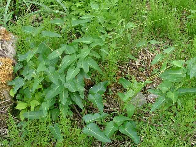 | 今日は最近少し遠のいていた八雲熊野の須谷の谷へ行くことにした。梅雨も上がり夏の陽が照っています。山の入口にはヌスビトハギに似た薄紫の花が迎えていたが、フジカンゾウでした。梅雨の雨のせいで、まだ山が乾いていなくて足場が悪く、また夏草が生い茂りすぎて、はっきりしない道がよけいに見えなくなってしまい、あまり動けません。新しい花としては、モミジガサ(蕾)を見つけました。ここは簡単に切り上げ、帰りの道でもう1つ森脇の谷に初めて入ってみました。ここではあまり花穂が曲がらないオカトラノオを見つけ、イヌヌマトラノオかと思いましたが、違うようでした。ここの谷もまたゆっくり歩いてみたい感じです。帰り道の大庭で田んぼの中にたくさん並んだカカシ達の姿には、微笑ましいものを感じました。 |