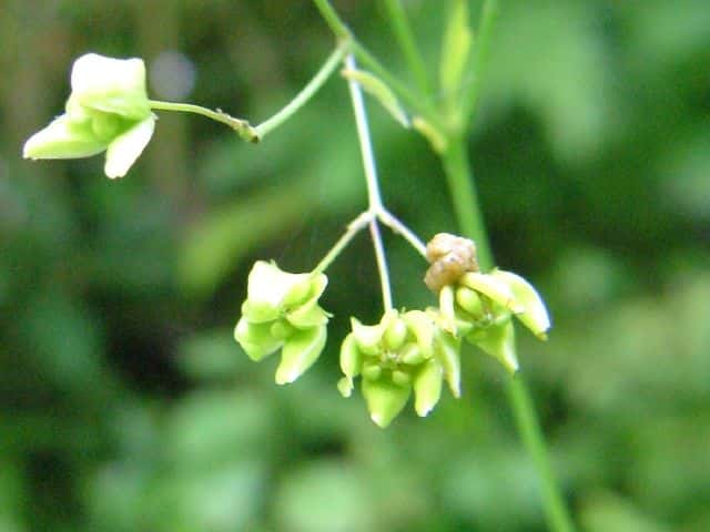 | 朝には雨も止んでいましたが、とても蒸し暑くなっています。2週間前に近くの山で見たコクランの蕾が気になるので、まずそちらを覗いてみました。ちょうど花を開いたところでしたが、黒い色の花で変わった形をした花です。 ここからいつもの東忌部の田んぼの回りや山の方へ行ってみようと思います。以前に見たミズトンボやオオバノトンボソウがどうなっているかも気になります。陽射しのある田んぼの回りを歩いていると、真夏のような暑さに頭がくらくらしそうです。ミズトンボがあった場所を探しますが、結局見つかりません。なくなってしまったのでしょうか。またオオバノトンボソウも以前にあった場所に見当たりません。これもなくなってしまったのかと、さびしくなってしまいました。田んぼの回りもこれといった花もなく、ホソバノヨツバムグラが白い小さな花をつけているくらいです。 ここから一度八雲へ山を越え、再度違う道から山を越えて帰り、東忌部の熊山へと向かうことにしました。八雲の田んぼ脇の道路で一休みしていると、草むらに小さな淡緑色の霞みのようなものが見えました。よくみるとヨツバムグラを小さくしたような花がかたまって咲いていて、後で調べるとヒメヨツバムグラという花のようです。熊山の山にもこれという花はありませんでしたが、クズの葉にできる虫えい(クズハトガリタマフシ)を写すことができました。 とにかく暑い一日でした。 |