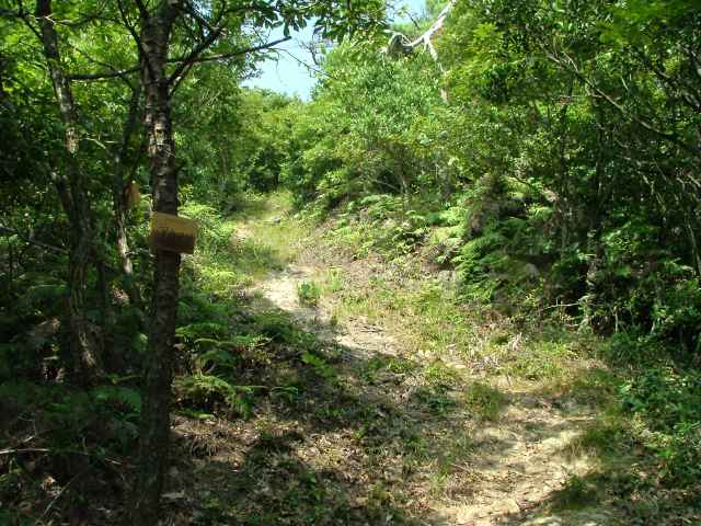 | 今日は久しぶりに、宍道と隣の雲南市の間にある丸倉山(馬鞍山)371mに登ってみることにしました。途中までは急な砂利道の林道が続き、自転車もスリップをして満足に乗って上がることは難しい道です。それよりも暑さにばててしまいます。乗ったリ引っ張ったリ、なんとか林道の終点まで、たどり着きました。ここから少し上がったところに東屋があり、ここからは雲南市から更に中国山地の山々が望まれます。ここから下ったリ上ったりとしながら丸倉山の頂上を目指しますが、最後の上がりはとても急な山道になっていました。頂上は割と広い感じですが、木々に覆われ一度に360度のパノラマとはいかないようですが、南北に眺望が開けています。 もう少しなにか花があるかと思いましたが、残念ながらありませんでした。 |