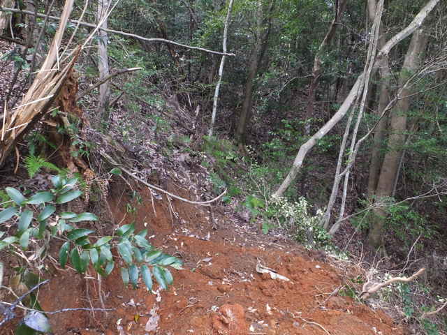 16:19 鉄塔敷地の急斜面の下方に 巡視路がある。 |