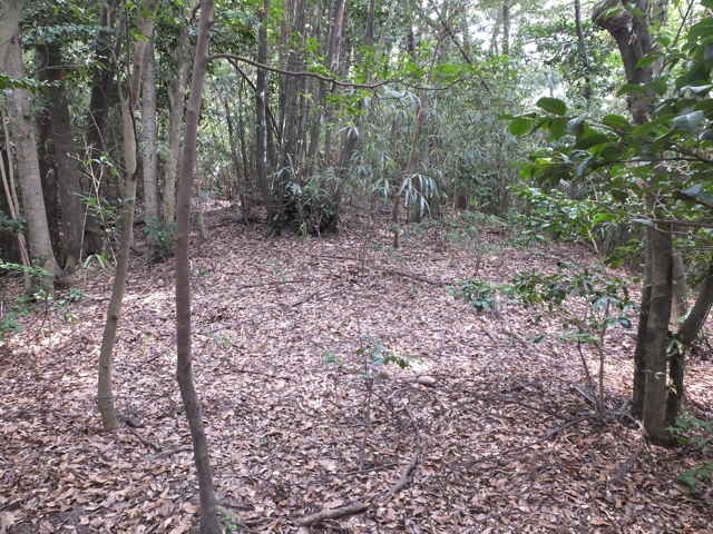 | 10:40 竹林の奥の斜面へ向かう。 |
