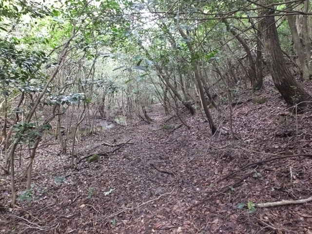 11:50 斜面を上がると急な登山道がある。 |