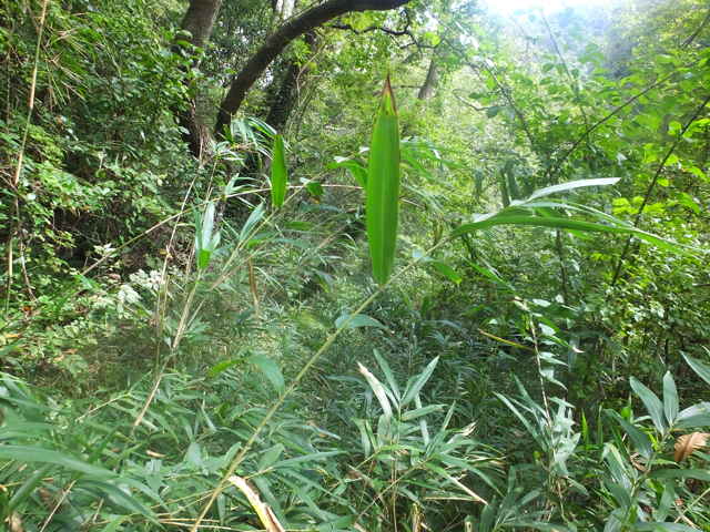 12:25 踏み跡はなくなり、竹藪の急斜面となる。 |