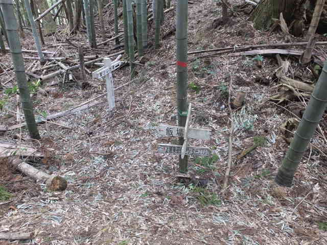 12:20 白い標識に「飯場」への矢印がある |