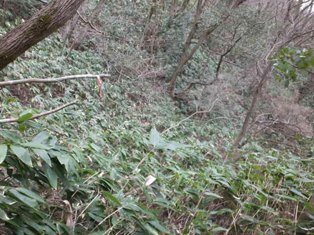 12:23 峠を越え竹林の斜面を東へ進む |