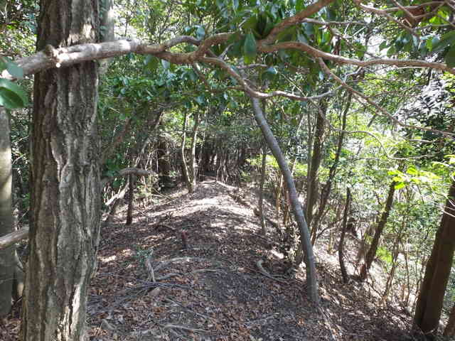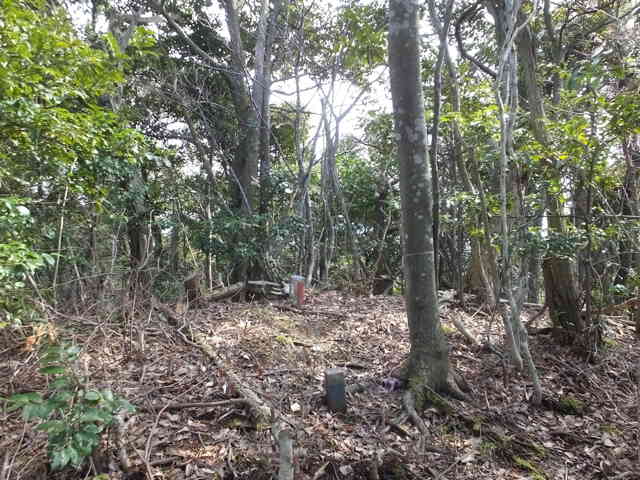 | 今日は1月7日に朝日山の東ノ峰から舞木・頭谷池の上流へ急斜面を下ったが、尾根を回って林道塩谷舞木線へ下りるルートがあるはずなので、そのルートを探してみることにしました。 東長江町の朝日山の麓に駐車場があるので、ここへ自転車を置き、参道を歩いて上がることにしました。道路脇の不動明王を写したりしながら、中腹の駐車場を経由し、30分ほどで朝日寺に到着しました。 朝日寺から東ノ峰へ向かい、三角点を確認し更に東へ進むと、以前にアンテナ鉄塔があった広場へ出てきます。先日もここで尾根道を探してウロウロしたのですが、やはり尾根筋への道ははっきりしないので、適当なところから林の中へ入り、先日テープを結んだ尾根筋へ出ました。 先日のテープを補強しながら、また枝を整理しながら小ピークを過ぎ、植林地との境をシダを分けながら上がって行くと、尾根道が左右に分かれたピークがあります。ここから左へ少し進むと、右へ開けた踏み跡がありますが、これは頭谷池の上流の谷の急斜面へ続くルートです。ここから足下が背の低いシダなどで覆われ踏み跡がはっきりしませんが、植林地との境を下れそうでした。 ここからも踏み跡はしっかりとしており、30分くらい進んで4個目くらいの小ピークにはテープがたくさん結んでありました。テープは右の尾根を指していましたが、正面に開けた斜面が続いているので、少し下がってみました。しかし踏み跡らしきものはなく、急斜面と藪になってくるようなので引返し、テープのある右の尾根を進みました。 8分ほど尾根を進むと背丈ほどの石柱があり、「秋葉大権現 嘉永二年己酉(1849年)六月 講中」と記されていました。秋葉山信仰の山と思われます。ここからは広い参道となる道が下っていて、5分ほど下ったところに灯籠と手水鉢がありました。植林地を過ぎ4分ほどで林道塩谷舞木線へ出てきました。 |
