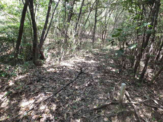 | 14:06 作業道の分岐を右へ入る、道は細くなる |
