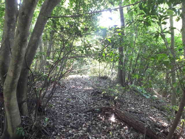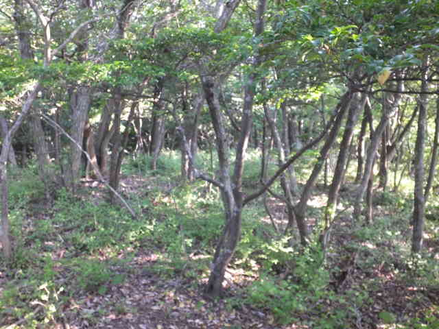 藪を抜けると、樹林内に小径がある |