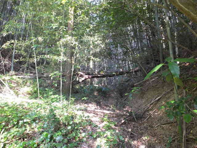 道路脇から山の斜面に向う |