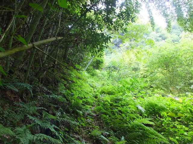15:20 谷の奥の急斜面の竹藪を上がる。 |
