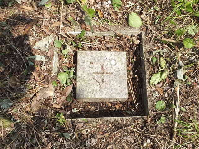 | 14:13 団地の道路法面の上にある三角点。 |