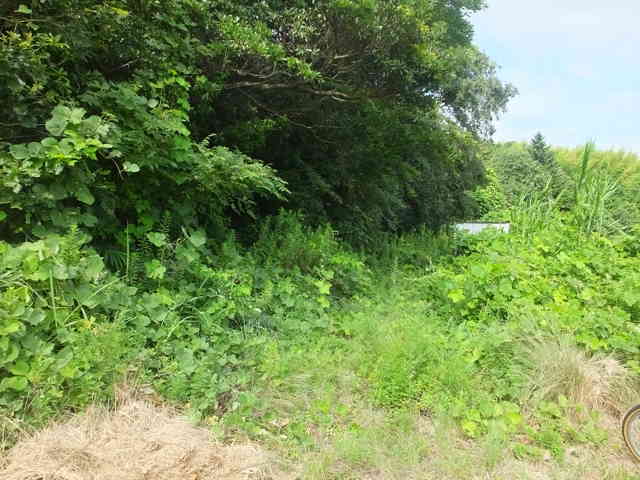 | 14:52 道路脇から谷沿いの草むらに入る。 |