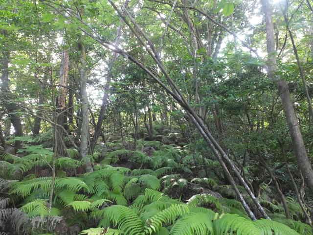 15:36 小ピークへ上がるとシダが密生してくる。 |
