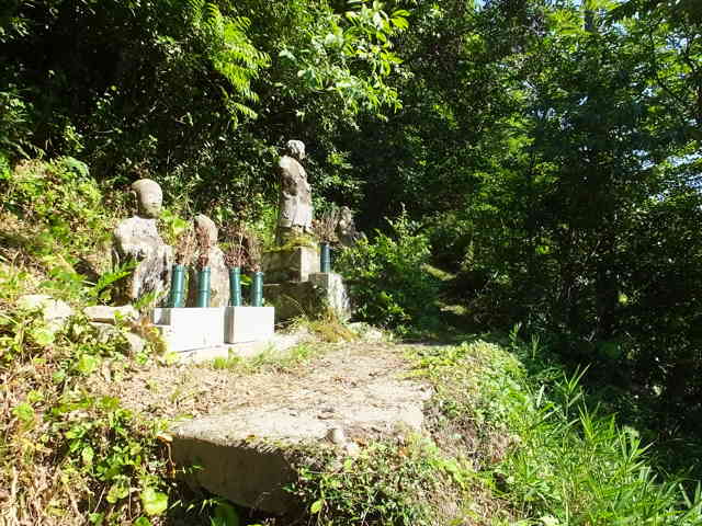 | 15:31 峠の脇のお地蔵様から鉄塔巡視路を上がる。 |