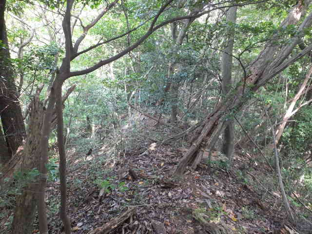 13:32 小径を離れ尾根へ上がる。 |