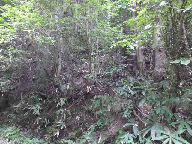 | 13:27 背の高い笹藪の中へ分け入る。 |