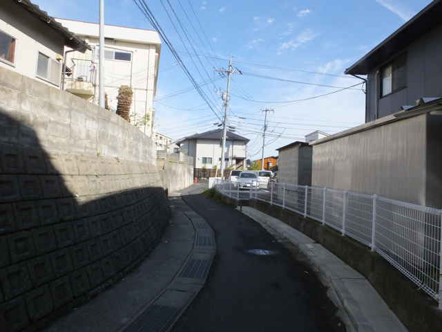 | 丘を下ってきた径。 | 小路の先に島大のグランドが見える。 | グランドはフェンスに囲まれ通れない。 |