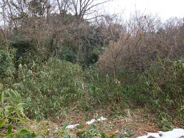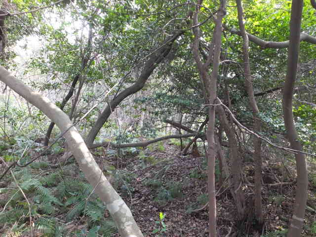 | 11:27 踏み跡はないが木々の間の斜面を上がる。 |