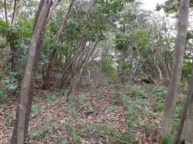 | 今日は、久しぶりに天気も落ち着いて晴れるようなので、美保関町の三角点(森山)と近くの三角点を見ようと思います。 三角点(森山)は、先日下宇部尾地区の田口集落を訪ねた奥から右へ入った山にあります。点の記では谷の奥から斜面を上がるようになっていますが、先日確認すると谷の奥は竹が密生した急斜面でした。手前の畑の中の小径が山へ続いていそうなので、こちらから入ってみました。畑を過ぎると梅林の脇に、笹を刈った小径が続いていますが、山への入口は笹が密生していました。山には踏み跡らしきものは不明ですが、藪にはなっておらず木々の間を尾根まで上がれました。尾根には1箇所ほどシダが深い所がありますが、概ね歩きやすい尾根道が続いています。頂上部はやや広がりを持って開けていますが、眺望はありません。 三角点(鷺鼻峰)は美保関支所の脇から海岸沿いに進み、道路終点の駐車場脇から藪になっている山へ入ってみました。点の記では尾根沿いに進むようになっているので、急傾斜の藪をなんとか切り開きながら上がりました。イバラが多いので、何箇所も刺で引っ掻いて血が出てしまいました。尾根まで上がっても、踏み跡らしきものは全く見当たらず、密生した藪が続くので、この尾根は諦めました。引き返して谷を挟んだ反対側を上がってみましたが、こちらも同様にイバラの藪が続き、こちらも諦めました。 次に三角点(和田多鼻)へ向かいました。総合公園から江島に向かう道路の入口の道路法面の最上部に三角点があります。法面はコンクリート吹付けの急斜面で、足を滑らせると、落ちてしまいそうです。先日様子を見た時に、法面の上部にロープが張ってあるように見えたので確認すると、やはり吹き付けと樹林の境にロープが張ってありました。ロープを頼りに上部へ上がると、踏み跡が樹林の中へ伸びていました。最上部に上がり、三角点を探すと、吹付けとの境のシダの中に三角点が見えました。 時間があるので先日山への入り口の様子だけを見ていた三角点(法吉)へ行ってみることにしました。淞北台の団地から水道施設の入口まで行き、フェンスの横から山へ上がりました。山の斜面には踏み跡があるような感じで、尾根へ上がると古いテープが残っていました。尾根の小径の中に白い標柱が見えました。 |