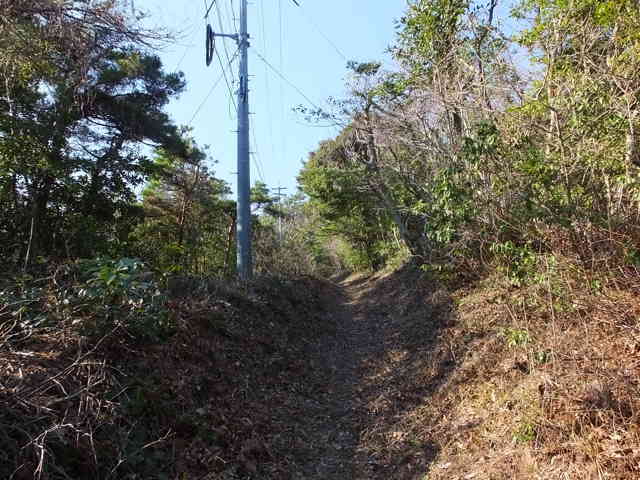 | 林道の上部に古い小径がある。 | 文導寺越入口 電柱三坂山支30付近 | 電柱三坂山支26付近から小径がある。 |
