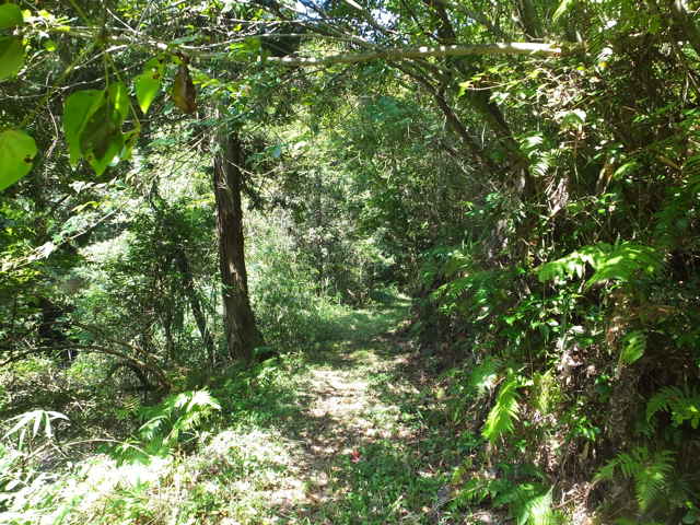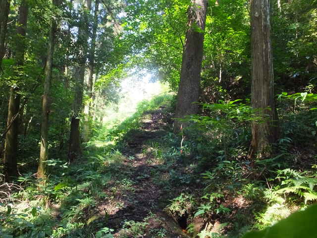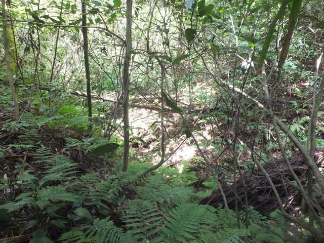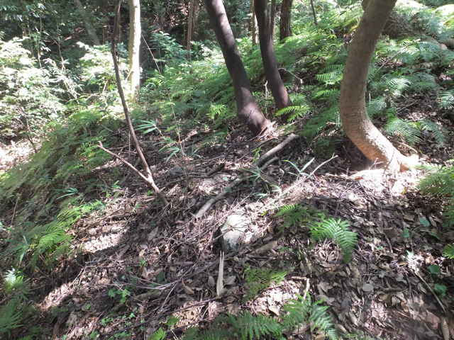 | 畑の脇の土水路に対生の葉をつけた小さな植物がありました。少し離れており詳しく観察もできず、花もなく、何だろうと思いながら写して帰りました。蕾の花序の様子、葉の様子などからオオカワヂシャだろうと思います。以前に近くで1回だけ見かけているので、間違いないと思いました。また気になっていたヤブカラシの真珠体を詳しく見てみました。 今日は、2017年7月22日に三等三角点(大谷)を探して福富町から山へ入ったときに、地元の人から「この道は山を越えて朝酌町に続いている。」と聞いていたので、そのルートを確かめて見ようと思いました。 福富町の集落を山へ向かって入ると、民家の間から山へ向かう道が続いています。林間の小径は溜池の手前まで舗装されており、歩きやすくなっています。斜面の階段を上がると溜池があり、溜池の縁を周って奥へ進むと、鉄塔巡視路が左へ分岐しますが、そのまま直進します。直進の道は巡視路ほど管理されないのか、草や笹が多くなってきます。しばらく上がると峠に到着します。峠を越えると急斜面となり、小径は狭く、ほとんど最近は人も通らないようで、踏み跡が不明瞭になってきます。突然踏み跡が見えなくなって、あたりを見回すと、右へ急折して斜面を下っている不明瞭な踏み跡がありました。踏み跡にはわずかに石の階段が残っていました。ところどころ踏み跡が見えなくなりますが、つづら折れに下っているので、なんとか踏み跡らしき形跡を見つけて斜面を下ることができました。斜面を下ったところで、全く踏み跡がわからなくなり、直進は藪となったような谷があり、開けたようになっている左の尾根の方を探しましたが不明でした。諦めて谷へ下りて進むことにしましたが、これがルートだったようで、少しの藪を越えると、谷沿いにはっきりとした踏み跡がありました。竹林の向こうが明るくなり、溜池の脇に出てきました。 福富町側はまだ利用する人がいるようで歩けますが、朝酌町側は全く歩く人もいないようで、荒れ放題になっており、もうしばらくすると踏み跡もわからなくなってしまいそうです。 |