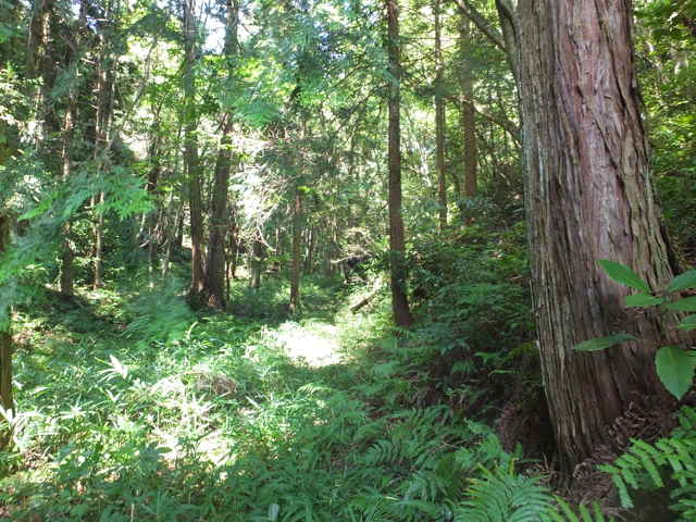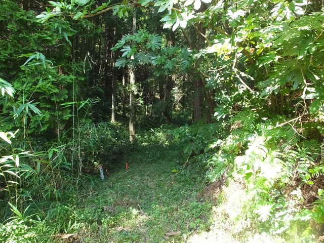 | 鉄塔の間の谷を入る。 | 民家の間から山への道がある。 | 12:42 山の道は舗装されている。 |