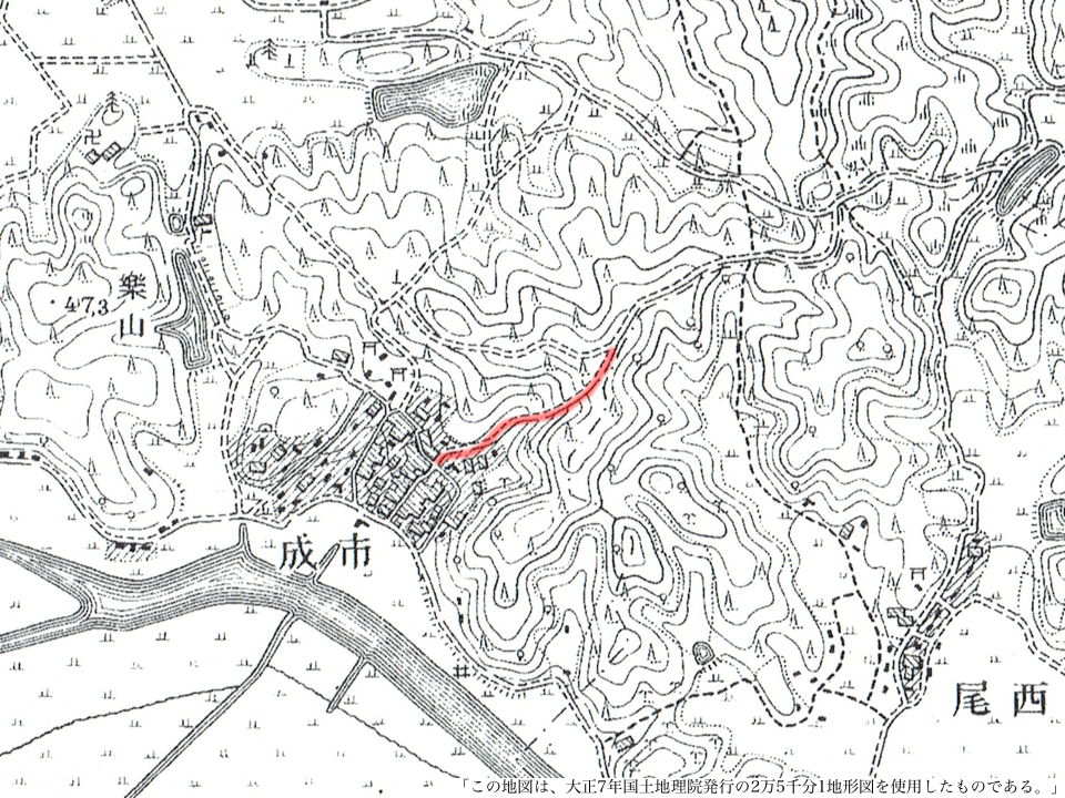 | 駐車場の奥から出てきた。 | 旧版地形図 |