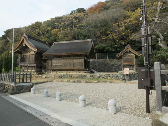 | 今日は、「松江杵築往還」を、出雲市大社町菱根〜出雲大社〜稲佐までの約4kmを歩きました。だんだん出発地が遠くなるので、今回も一畑電車で浜山公園北口駅まで行き、大社町菱根から西へ歩きました。 浜山公園北口駅の東の道路脇に小さなお堂があり、鑓ヶ崎弘法大師堂の縁起を書いた銘板がつけてありました。またその裏には「 先日11月30日に菱根の関所跡を見るために往還を離れたT字路から西へ向かって出発しました。ここから大社町の修理免という地区に入りますが、この地名は江戸時代に出雲大社の修理をすることで、租税が免除されたことに由来するとのことです。T字路から800mほど進み、100mほど北へ入って、西へ100mほど行くと、西原荒神社があります。素戔嗚命他3神を祭神とし亨保二十年(1735)に産土社として創建されました。荒神社から150mほど北に行くと乙見社があります。祭神は下照比売命で、出雲大社の摂社ということです。ここから西へ細い道を入った右手の堀川沿いに乙見温泉があったそうですが、昭和20年に廃止されています。乙見温泉は明治45年に発見されたもので、吊橋で大社から通えたそうで、対岸の堀川沿いに吊橋の橋脚の跡だけが残っています。 往還へ帰って、少し行くと右手に明源寺があり、寺から約300mで堀川に架かる神光寺橋を渡ると、杵築南になります。ここから出雲大社参道(神門通り)に向かって一直線に道が伸び、新馬場通りと呼ばれています。天保六年(1835)以前は、橋から100mのところから、右へ斜めに道が伸び、 元の新馬場通りへ帰り、まっすぐ進むと参道へ出て、勢溜に上がります。現在の出雲大社へ向かう南北の「神門通り」は、明治45年(1912)に国鉄大社駅の開通に伴って作られた道だそうです。 勢溜から西向かって「神迎の道」と呼ばれる道を西へ向かうと300mほどで 乗光寺から約200mほど行くと浜四つ角があり、往還は右へ曲がりますが、まっすぐ海岸へ向かってみました。永徳寺坂を下って国道431号を渡ると、道路沿いに石灯籠が2基立っています。永徳寺坂下の大燈籠と呼ばれ、初代は明治29年(1896)に作られ、その後移設・新設され、3代目になるそうで、初代の台座が残されていました。少し西へ向かった海岸は稲佐の浜で、かっては「沖の御前」と呼ばれた弁天島も今は陸続きになっています。 浜四つ角へ引き返し、往還は北へ向かって進み、養命寺の入口から左折し、約90mほどで北へ向かいます。安養寺前から左へ回り、すぐ路地を北へ進むと国道431号へ出てきます。 養命寺は出雲観音霊場第二番札所となっています。安養寺には、阿国ゆかりの遺品が移され、彼女の念持仏三十三体の観音菩薩のうち二体、愛用の鏡と数珠が伝えられているそうです。 国道へ出て奉納山入口から西へ、往還は70mほど国道に取り込まれています。右へ曲がった角には出雲大社末社の大歳社がありました。大歳社から150mほど路地を進むと、 寺から少し引き返したところに鳥居があり、奥まったところに とりあえず今回で、出雲大社までの「杵築往還」は確認できたので、これ以西の日御碕へのルートは今後の課題にします。 |