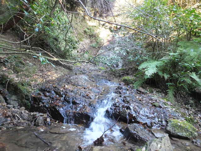 川は滝と急斜面があり進めない。 |