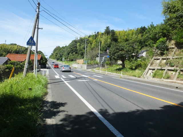 | 満願寺 上段に古い5体の丁地蔵が残されている。 | 寺津集落への入り口。 | 集落から一度国道へ出る。 |